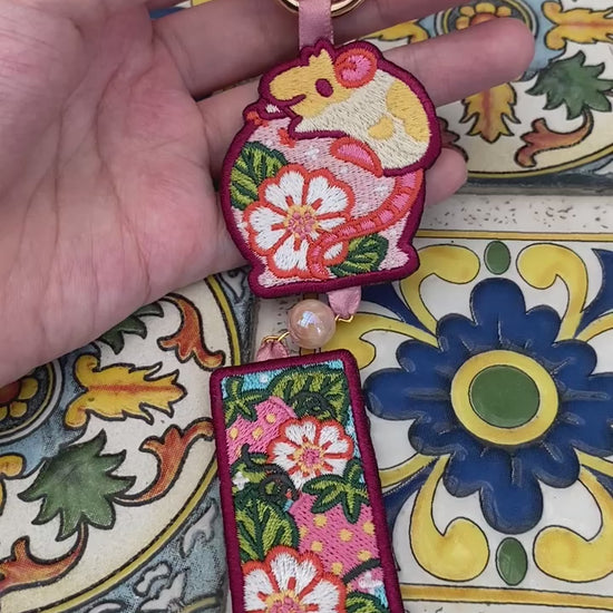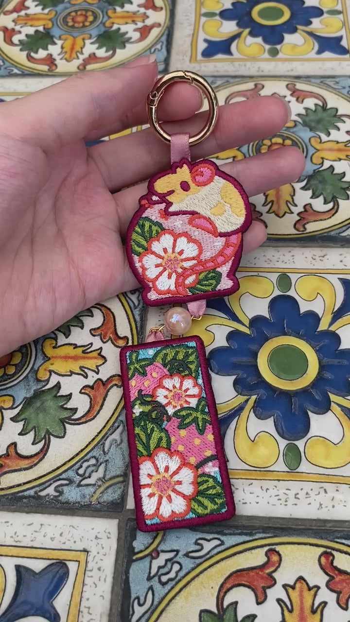 Rat Windchimes Embroidery Keychain - Blossom